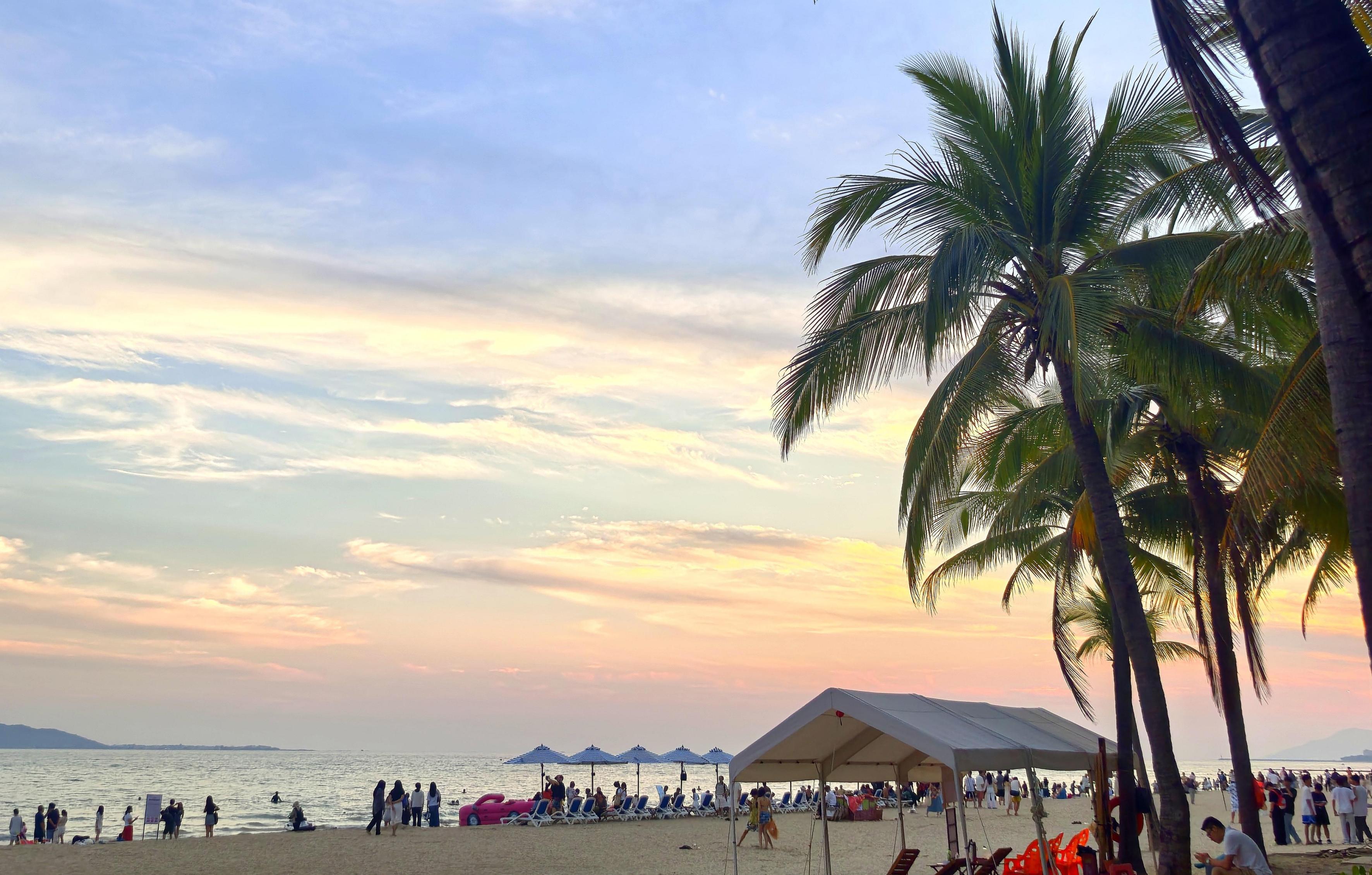 视线转到海南三亚,碧海蓝天间,潜水、冲浪等海上项目让游客尽享“踏浪飞驰”的激情,落日余晖下的海鲜盛宴和渔家风情,成为“蓝色经济”的生动注脚。“玩了一天海上项目,再躺在沙滩上看晚霞,这才是假期的浪漫!”来自安徽的游客叶女士感叹。