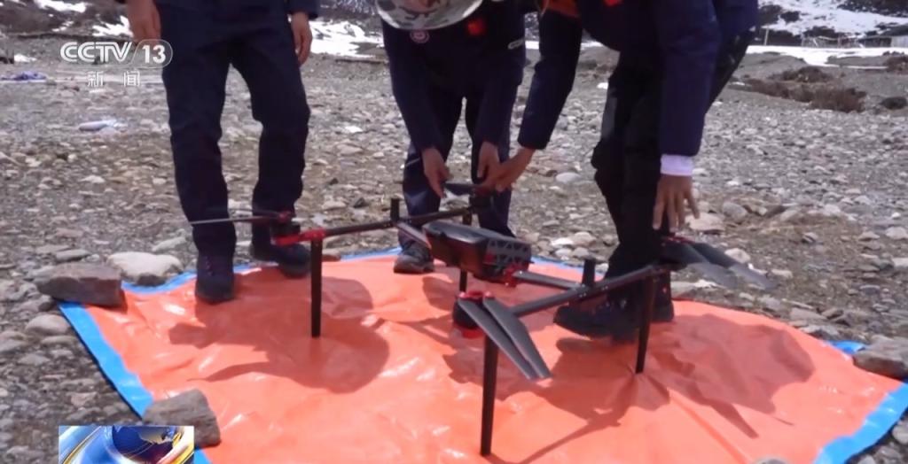 此次海洋性冰川航空探测调查中,除了直升机进行航空探测之外,调查工作还用上了先进的地面探测设备和无人机,通过空地协同,来获取更加准确的海洋性冰川数据。